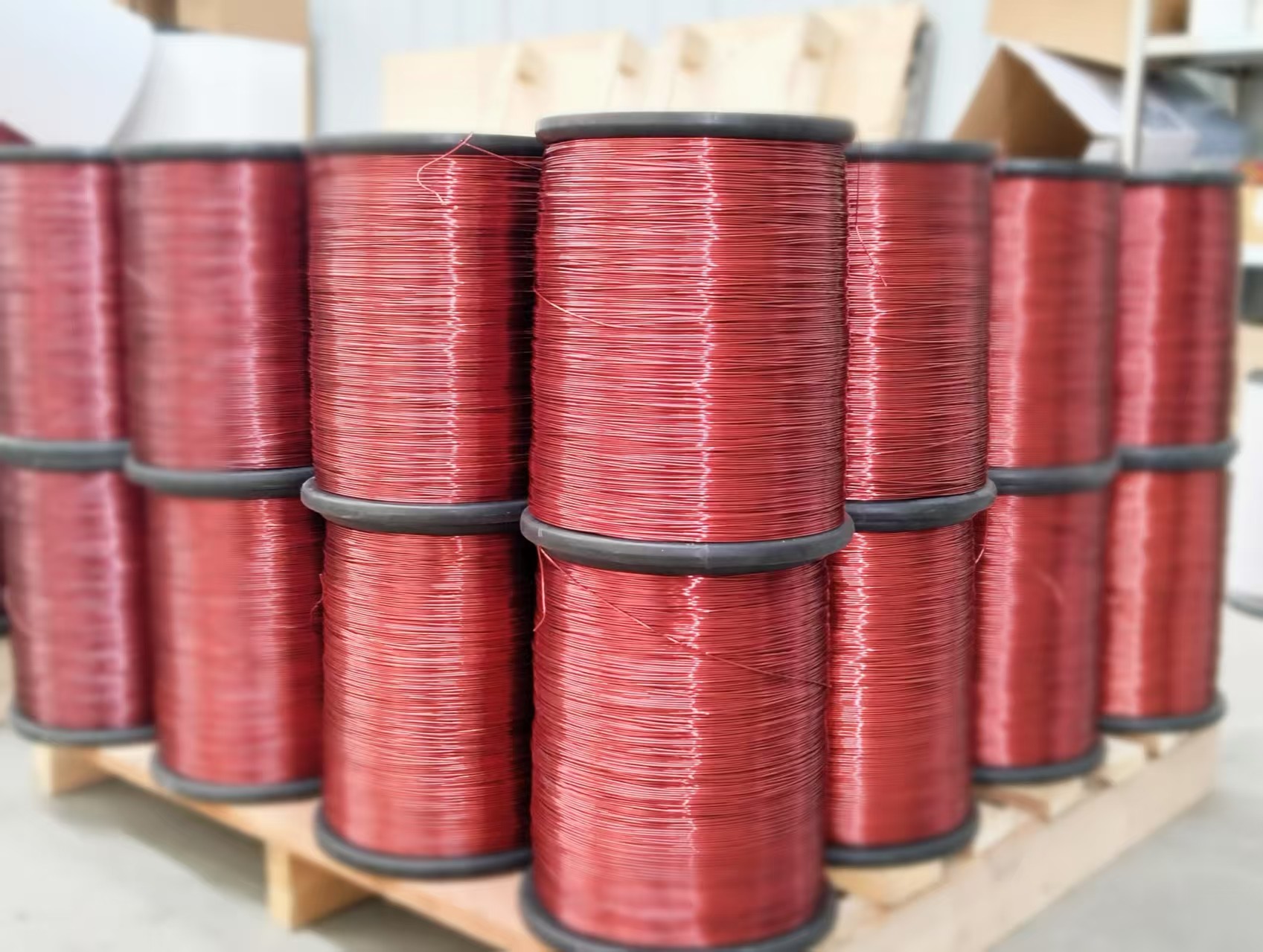 公司拥有各类型漆包机、拉丝机,拥有先进的水净化过滤设备 装配了国内先进的生产设备,在环保节能基础上解决了行业毛毡涂漆工艺最大的缺陷,并成功将行业内模具涂漆工艺应用到生产中。公司生产各种型号漆包铝线、铜包铝漆包线、漆包铜线,纸包线 被广泛应用于变压器、空调、冰箱、微波炉、电机、电视机、水泵等产品。